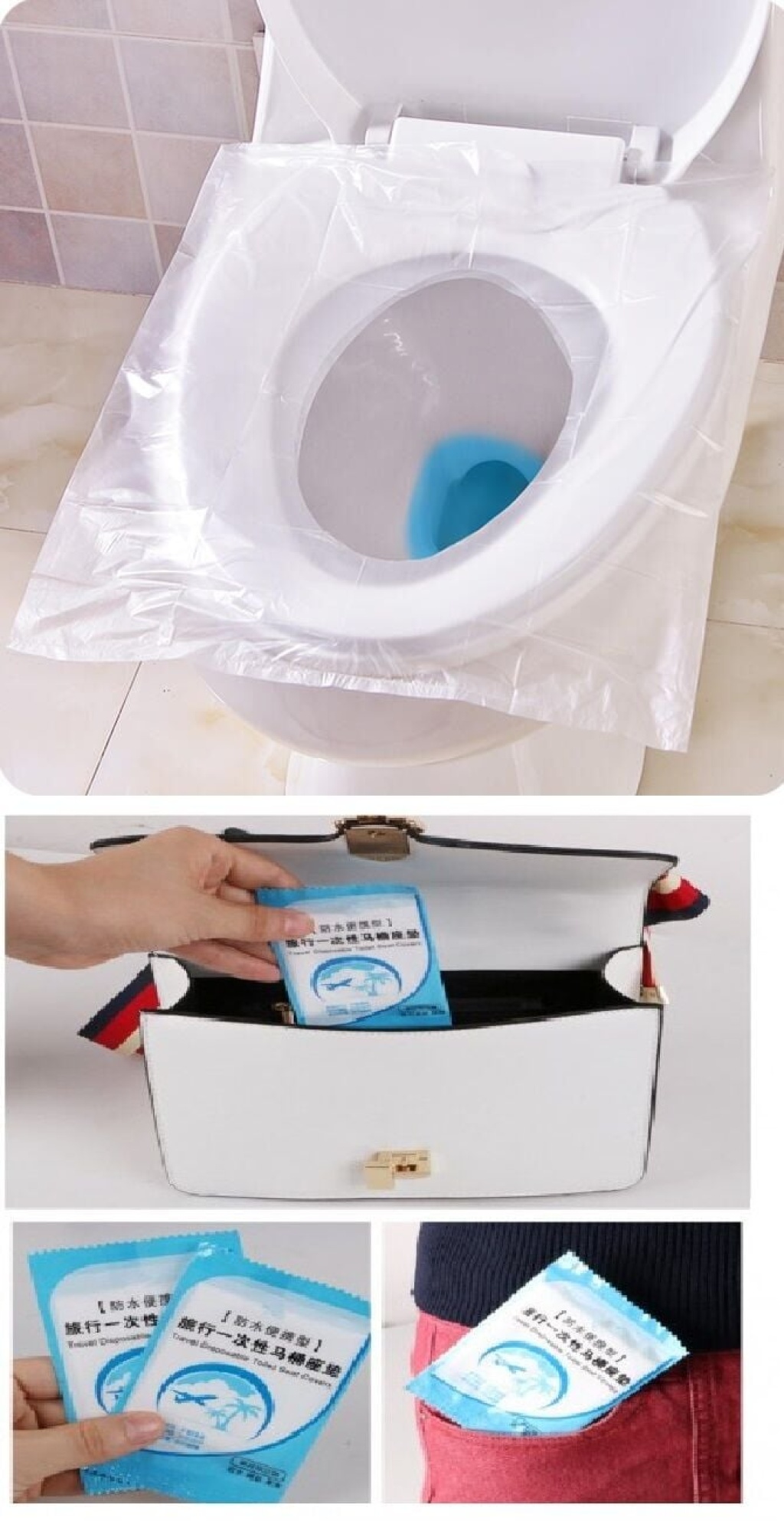 50 Adet Biyobozulur Klozet Kapağı Poşeti Seyahat Tipi Taşınabilir Klozet Kılıfı -