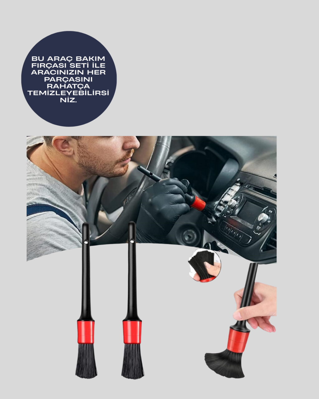 5'li Araba Temizlik Fırçaları-Farklı Boyutlu Fırçalarla Derinlemesine Temizlik -