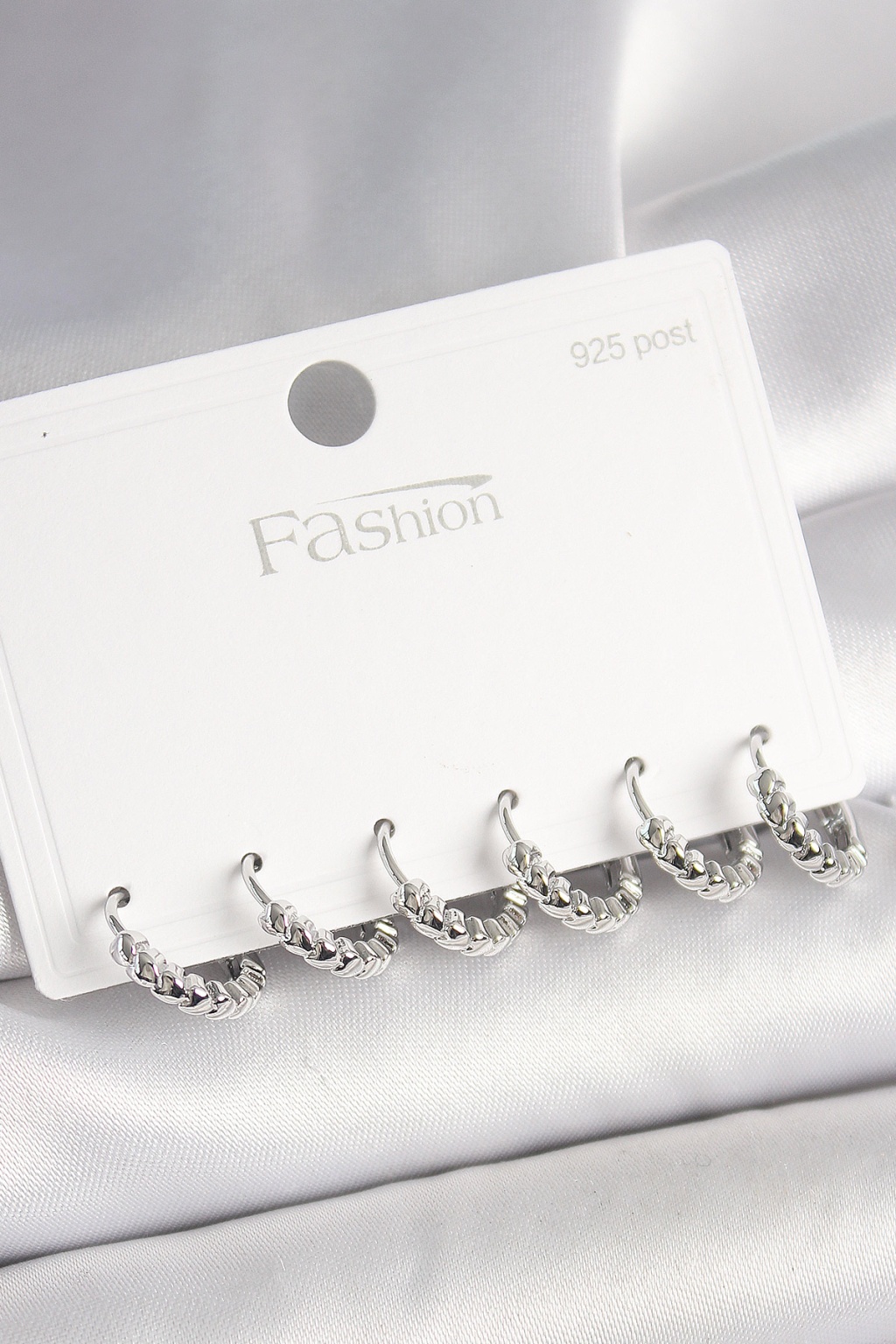 925 Ayar Gümüş Çivi Pirinç Gümüş Renk Kalp İşlemeli Halka Model Kadın Küpe Seti -