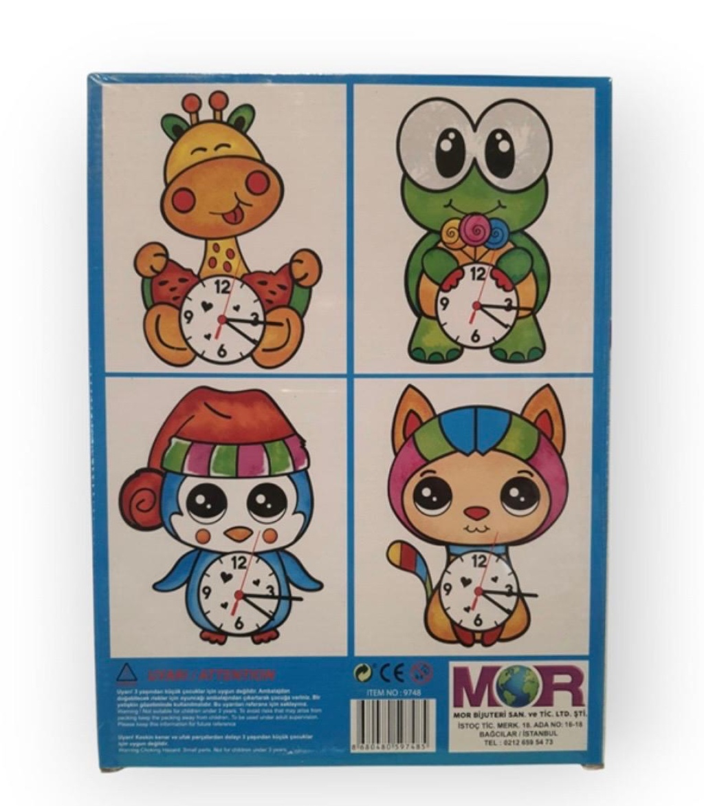 Bu set, çocukların hayal gücünü kullanarak bir saati boyayıp, sonrasında çalışan gerçek bir saat haline getirmeleri için gereken tüm malzemeleri içerir. ???? Kutu İçeriği Genel olarak MORTOYS ve benzeri markaların ahşap saat boyama setlerinde şunlar bulunur: Ahşap Saat Şablonu: Lazerle kesilmiş, boyamaya hazır ham ahşaptan yapılmış saat gövdesi. (Farklı modelleri bulunabilir, örneğin: Kız Kulesi, Araç, Ev, Hayvan figürleri vb.) Boya Seti: Ahşabı boyamak için genellikle 6 farklı renkte akrilik boya. Fırça: Boyama yapmak için uygun boyutta bir fırça. Saat Mekanizması: Boyama tamamlandıktan sonra saate işlevsellik kazandırmak için gerekli saat motoru, akrep ve yelkovan gibi parçalar. ???? Ölçüler Kutu Boyutu: Yaklaşık olarak 31 x 23 x 5 cm civarında olabilir. (Modele ve satıcının ambalajına göre değişiklik gösterebilir.) Ahşap Şablon Ölçüsü: Modele göre değişmekle birlikte, ortalama 20x27 cm gibi ölçülerde olabilir. ???? Çalışma Özellikleri ve Yaş Aralığı Pille Çalışma: Saat mekanizması genellikle 1 adet 1.5V AA pil ile çalışır. (Piller kutuya dahil değildir.) Yaş Grubu: Genellikle 4 yaş ve üzeri çocukların kullanımı için uygundur. ???? Eğitici Faydaları Yaratıcılık ve Hayal Gücü: Çocuklar kendi renk ve desen seçimlerini yaparak tasarımlarını kişiselleştirir. İnce Motor Becerileri: Boyama ve saat mekanizmasını takma aşamaları el becerilerini ve el-göz koordinasyonunu destekler. Odaklanma ve Sabır: Bir ürünü baştan sona tamamlama süreci, çocukların dikkatini toplamalarına ve sabırla çalışmalarına yardımcı olur.