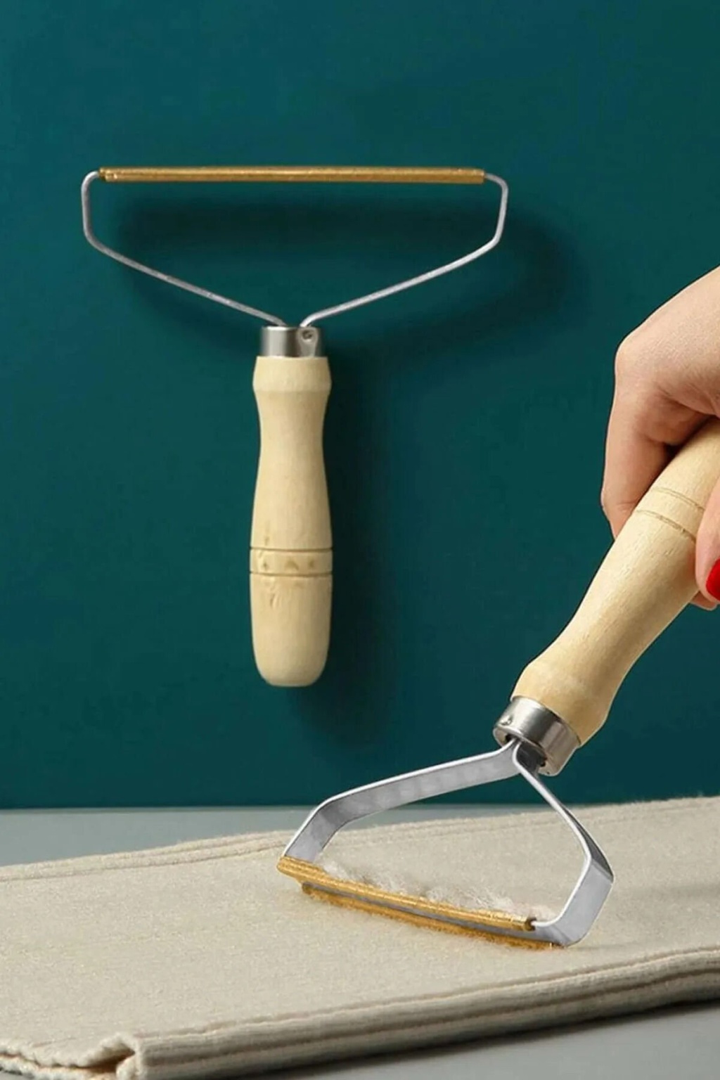 Ahşap Saplı Metal Kazak - Elbise - Halı Tüyü Temizleme Çift Taraflı Tüy Tiftik Toparlayıcı -