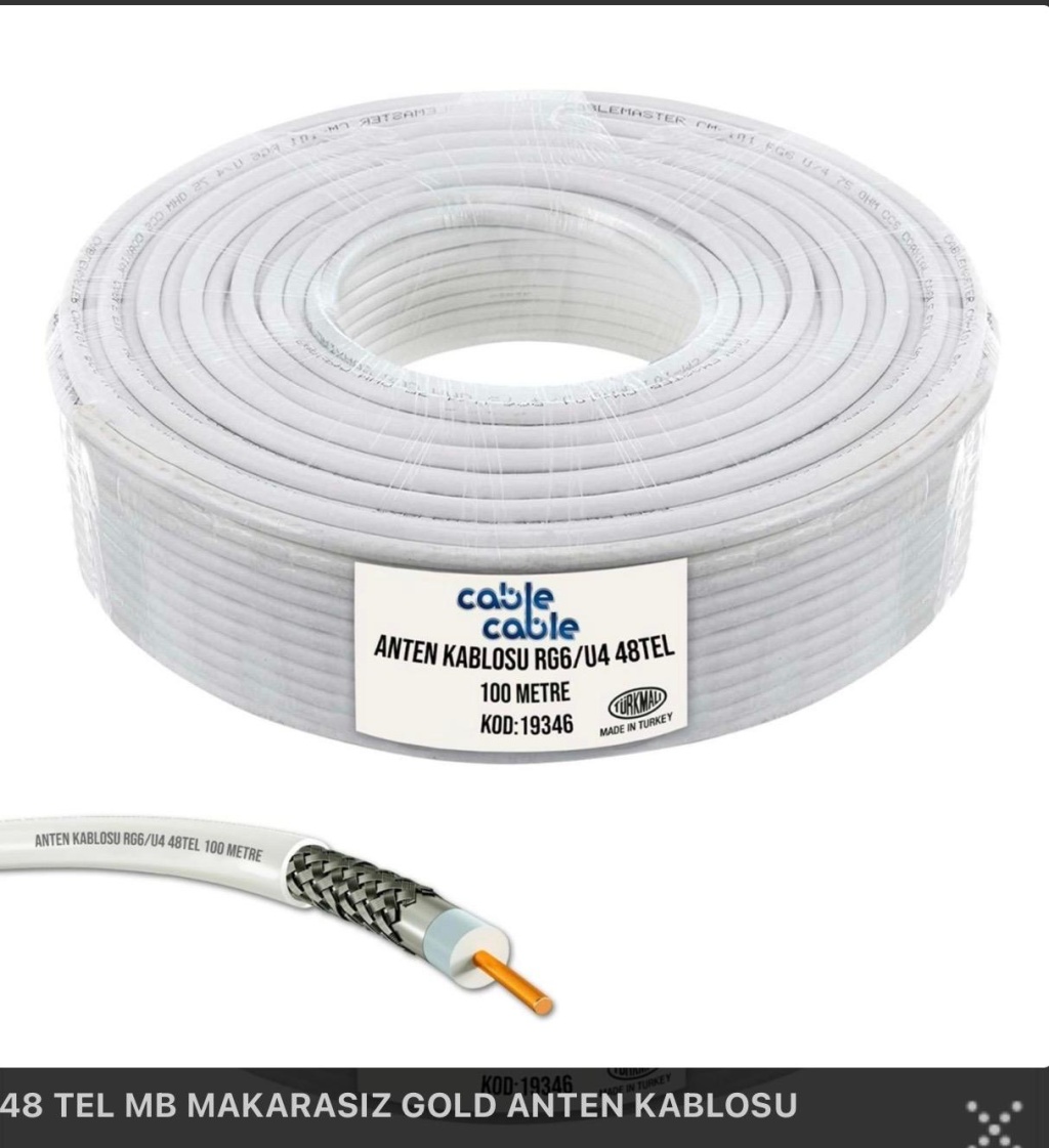 Elbette. Belirttiğiniz özelliklere sahip RG6/U4 Koaksiyel Anten Kablosu (48 Tel, Gold, 100 Metre), piyasada en çok kullanılan standart uydu ve TV kablolarından biridir.İşte bu kablonun genel ve teknik detayları: ???? Ürün Temel Özellikleri Özellik Açıklama Not Kablo Tipi RG6/U4 Koaksiyel Kablo Uydu, Kablo TV (CATV) ve CCTV sistemleri için ideal. Uzunluk 100 Metre (Rulo/Top) Metrajlı rulo ambalaj. Ekranlama (Örgü) 48 Tel Alüminyum tel örgü. Sinyal korumasını (parazit engellemeyi) belirleyen ana faktörlerden biri. Sinyal Desteği Full HD (1080p) / 4K (Ultra HD) Güncel yayın standartlarına uyumlu. Empedans (Direnç) $75 text{ } Omega$ (Ohm) Koaksiyel kablolar için standart empedans değeri. "Gold" İfadesi Yüksek Kalite Segmenti Genellikle kablonun performans kalitesine ve/veya iletken kaplamasına (CCS/AL) işaret eder. ????️ Teknik Detaylar (Markaya Göre Değişebilir) RG6/U4 tipi 48 telli kabloların iç yapısı ve malzemeleri genellikle aşağıdaki gibidir: İç İletken (Göbek): Malzeme: Genellikle CCS (Bakır Kaplı Çelik) veya CCA (Bakır Kaplı Alüminyum). Çap: Yaklaşık 0.8 mm ile 1.0 mm arasında değişir (En sık 0.90 mm). İzolasyon (Dielektrik): Malzeme: Fiziksel Köpük Polietilen (FPE) veya Gaz Enjeksiyon Teknolojisi. İşlevi: Sinyal kaybını azaltır ve empedansı korur. Ekranlama Katmanları (Shielding): Folyo: Alüminyum Alaşımlı Folyo (+PET olabilir). Düşük frekanslı parazitleri engeller. Örgü (48 Tel): Alüminyum tel örgü (%40 - %50 kapama oranı). Yüksek frekanslı parazitleri ve dış gürültüyü engeller. Dış Kılıf: Malzeme: PVC (Polivinil Klorür) Kullanım Alanı: Genellikle bina içi kullanıma uygundur. ???? Sinyal Performansı Hakkında 48 telli örgüsü, ortalama bir ekranlama performansı sunar. Özellikle 30-50 metreye kadar olan mesafelerde sinyal kaybını düşük tutarak Full HD ve 4K yayınlar için yeterli kalitede sinyal iletimi sağlar. Ancak, 64 veya daha yüksek telli kablolar, özellikle uzun mesafelerde veya yoğun parazitli ortamlarda daha üstün bir ekranlama sağlar.