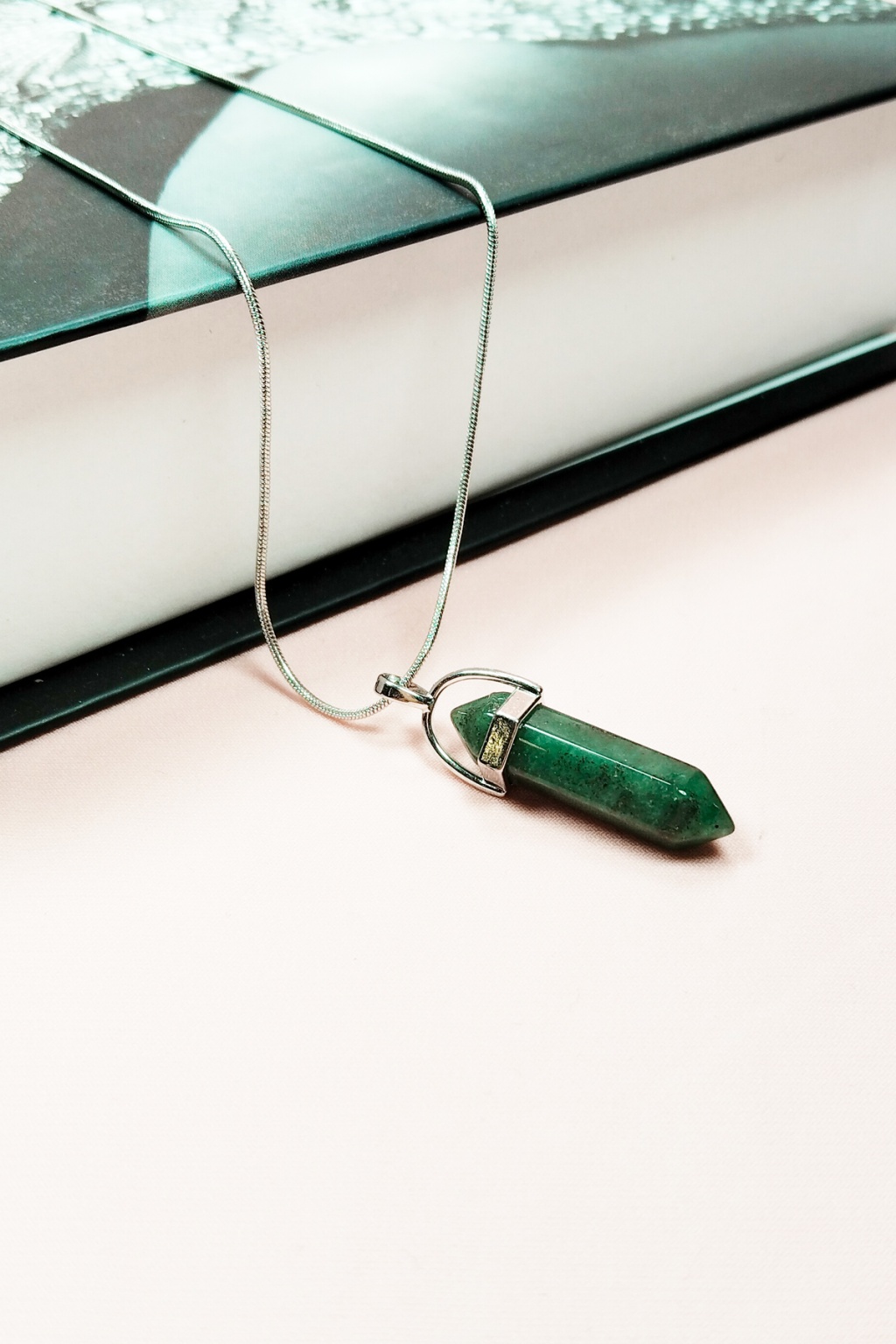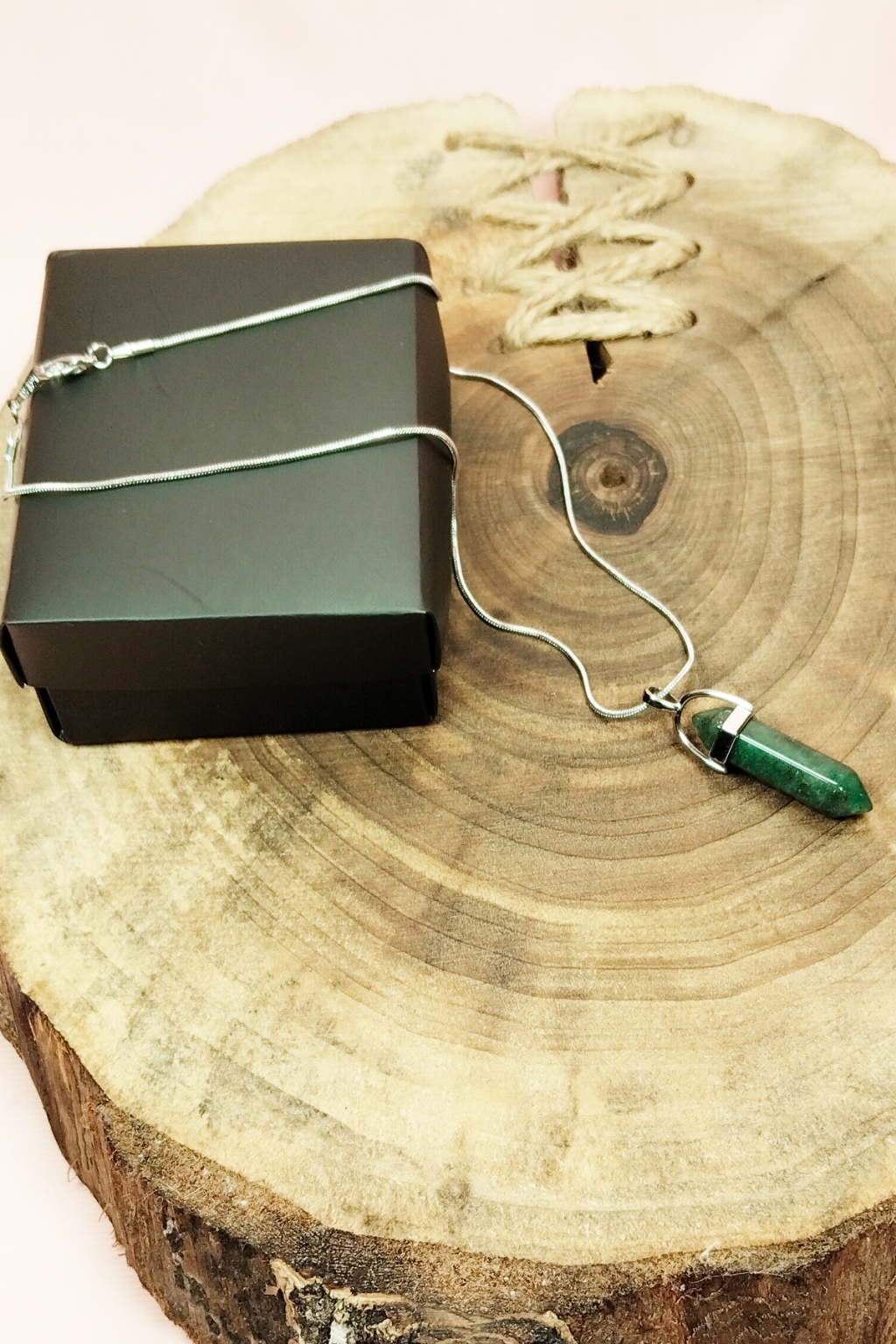 Aventurin Doğal Taşı Zincirli El Yapımı Tasarımlı Kolye Uç: 3,5 cm Zincir: 20 cm Kutulu |