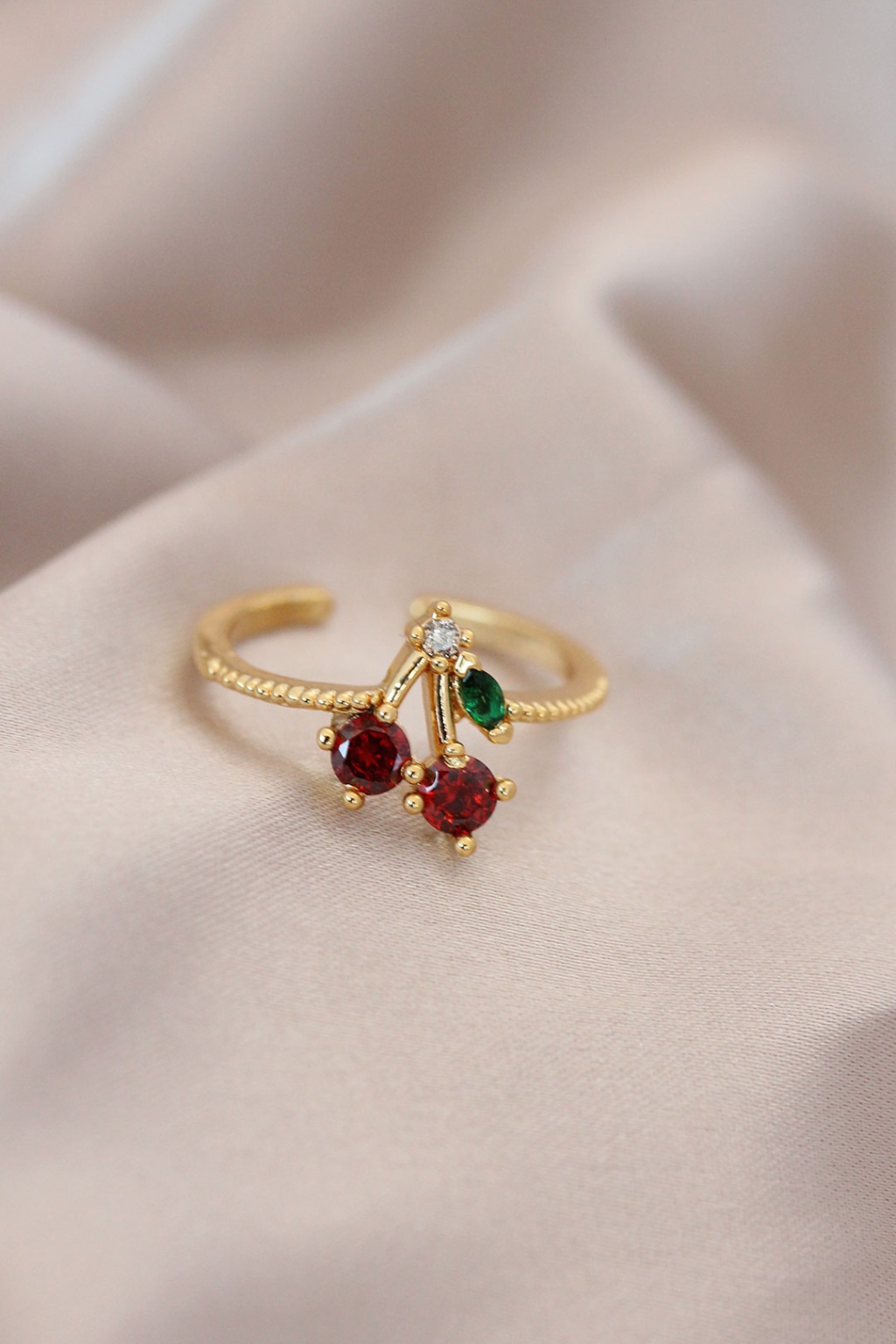 Ayarlamalı Gold Renk Metal Renkli Zirkon Taşlı Kiraz Yüzük -