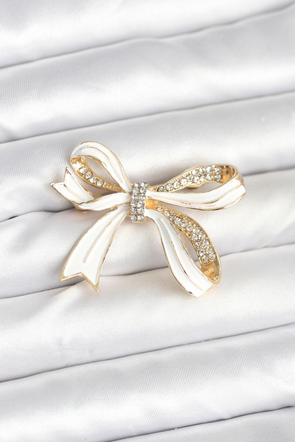 Beyaz Renk Fiyonk Model Broş - Lisinya