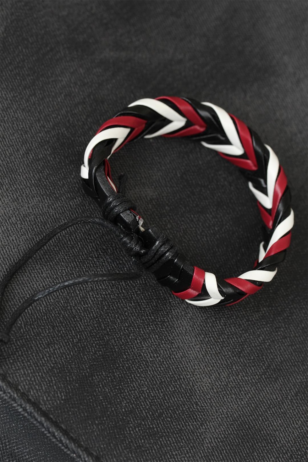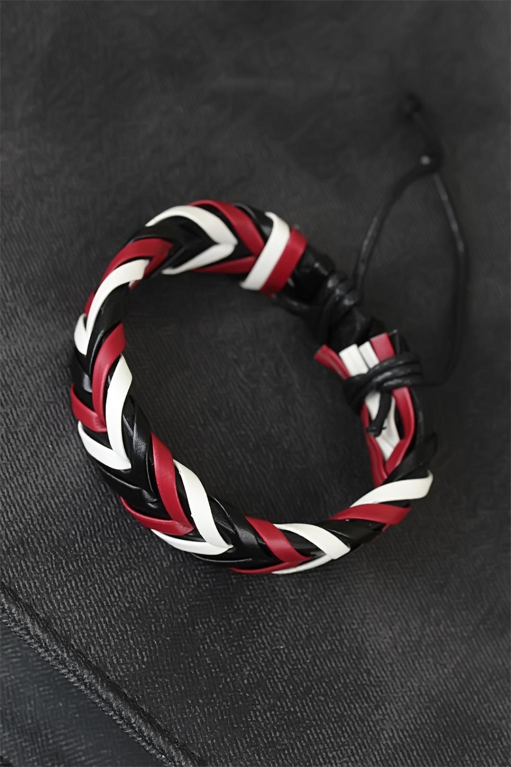 Bordo Beyaz Siyah Örgü Deri Erkek Bileklik - Lisinya