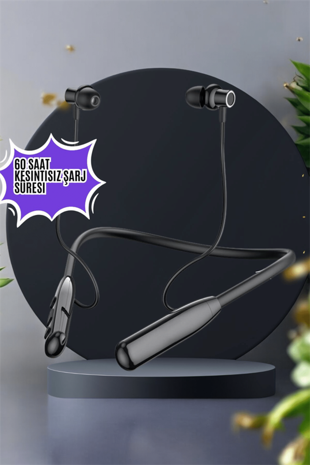 60 Saat Kablolu Boyun Askılı Dijital Göstergeli Bluetooth Kulaklığı -