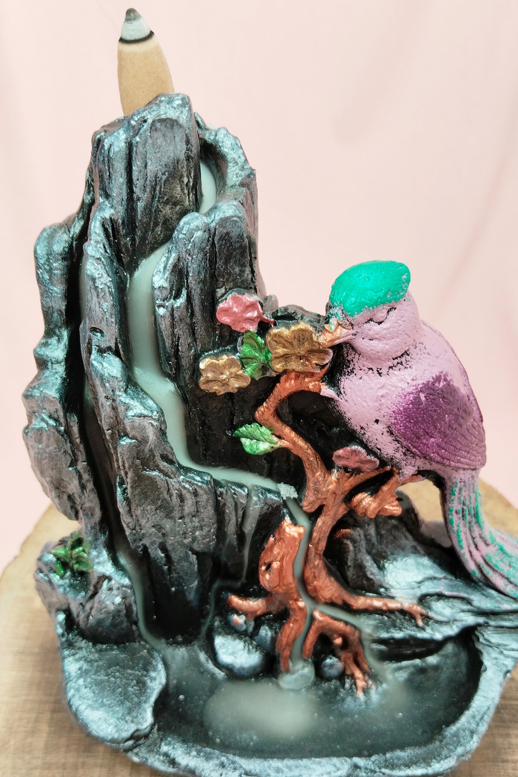Buyuk Boy Kuş Figürlü Biblo Model Geri Akış Şelale Tütsülük 5 Adet Koni Hediye