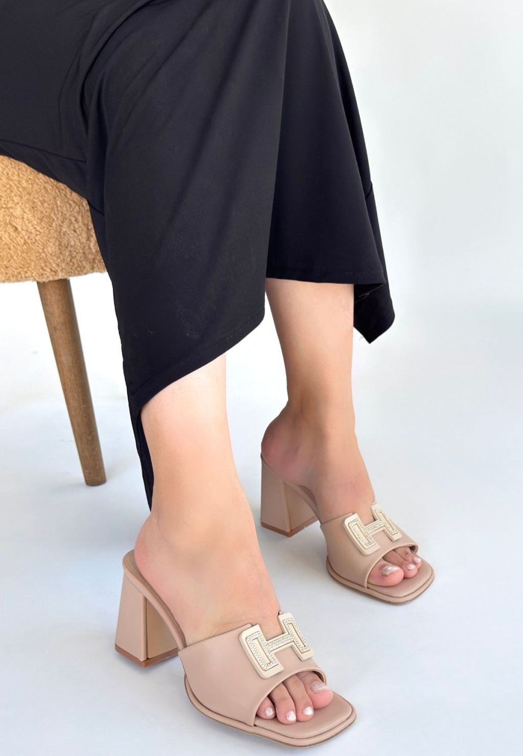 Caren Bej Cilt Topuklu Terlik -