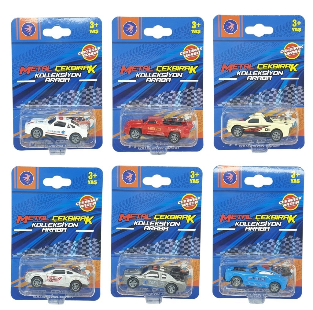 Çek Bırak Metal Küçük Arabalar 8 cm 6'lı Set (Lisinya)