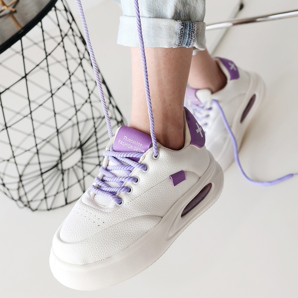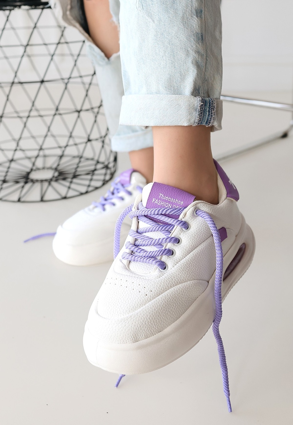 Chris Beyaz Cilt Lila Detaylı Bağcıklı Spor Ayakkabı -