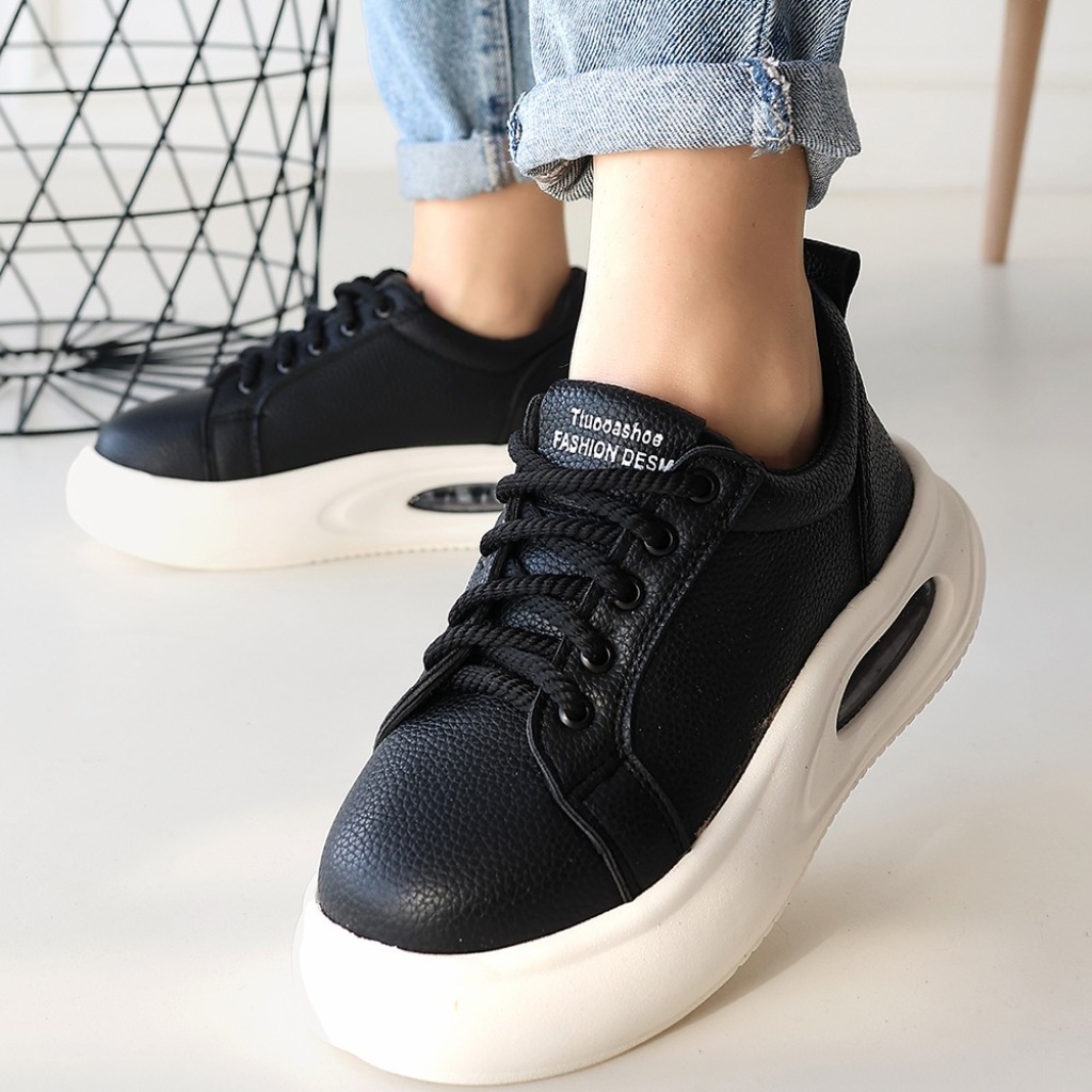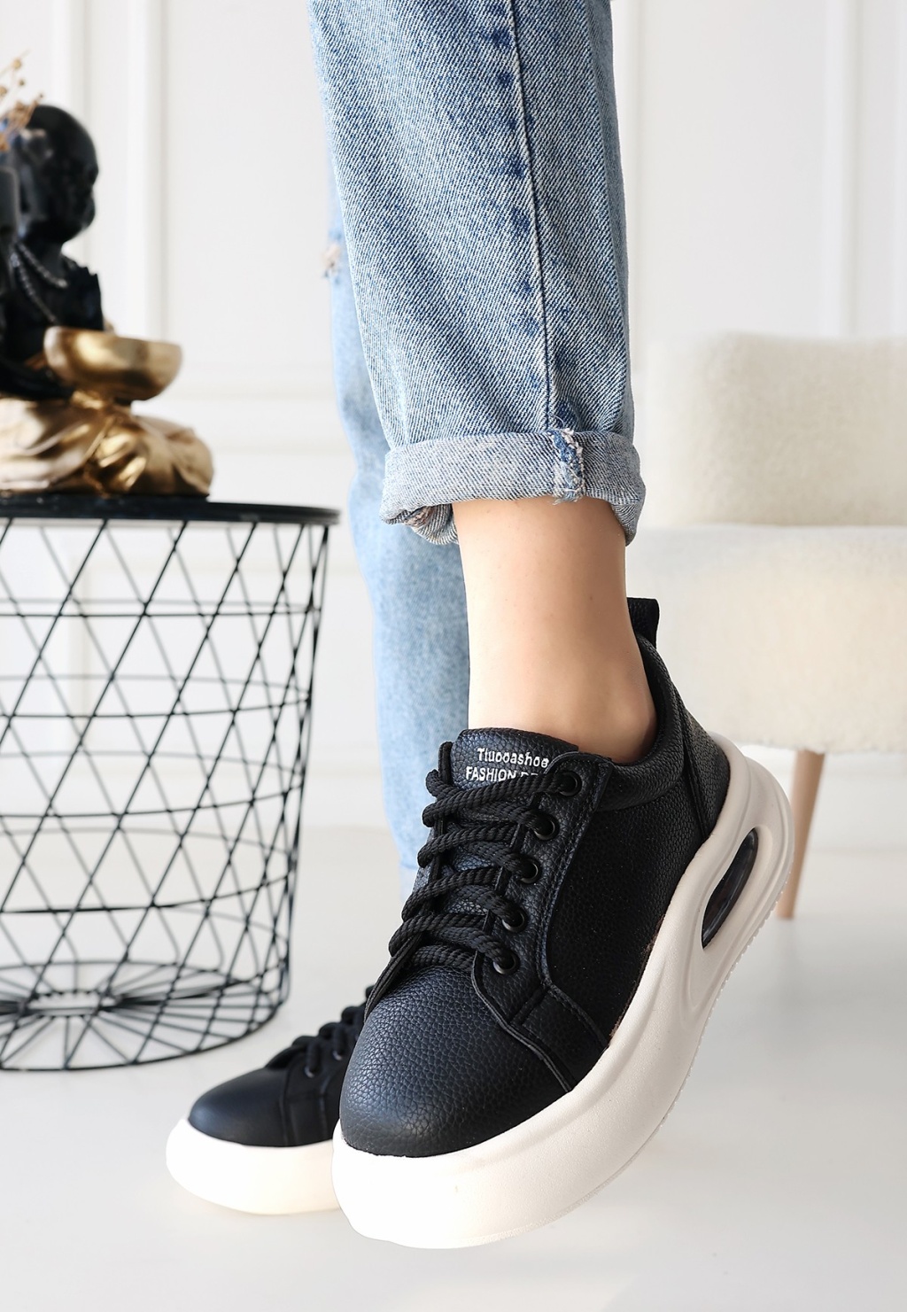 Chris Siyah Cilt Bağcıklı Spor Ayakkabı -