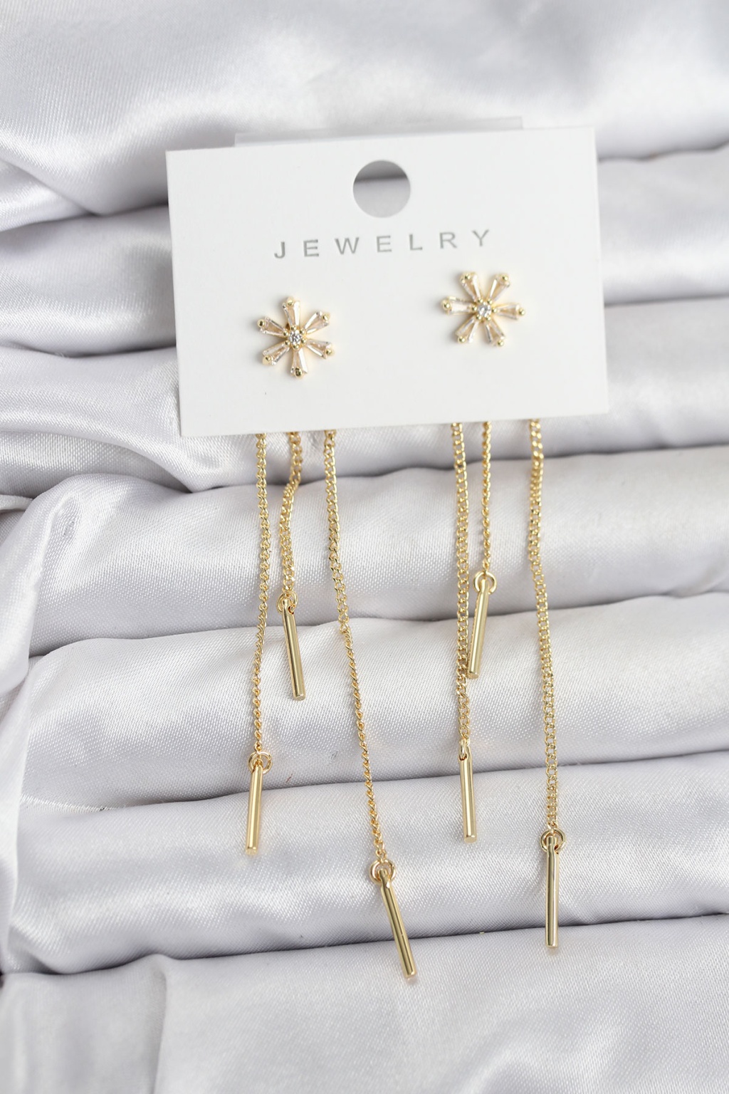 Çiçek Model Gold Pirinç Sallantılı Kadın Küpe -