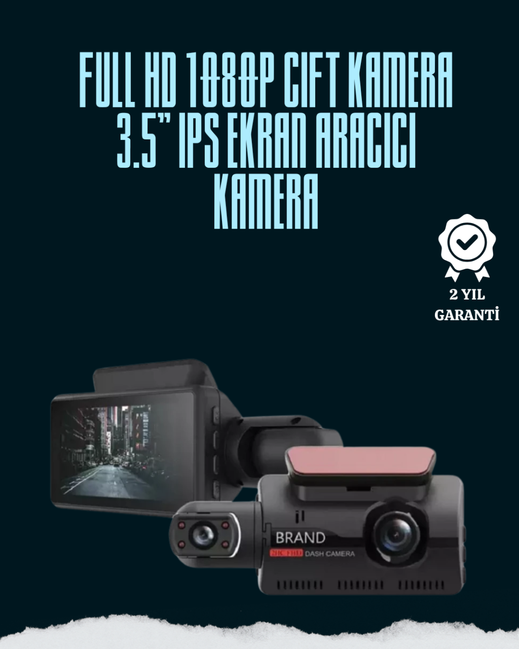 Çift Lensli Araç İçi Kamera – Park Koruma, Gece Görüş ve Tarih Damgası -