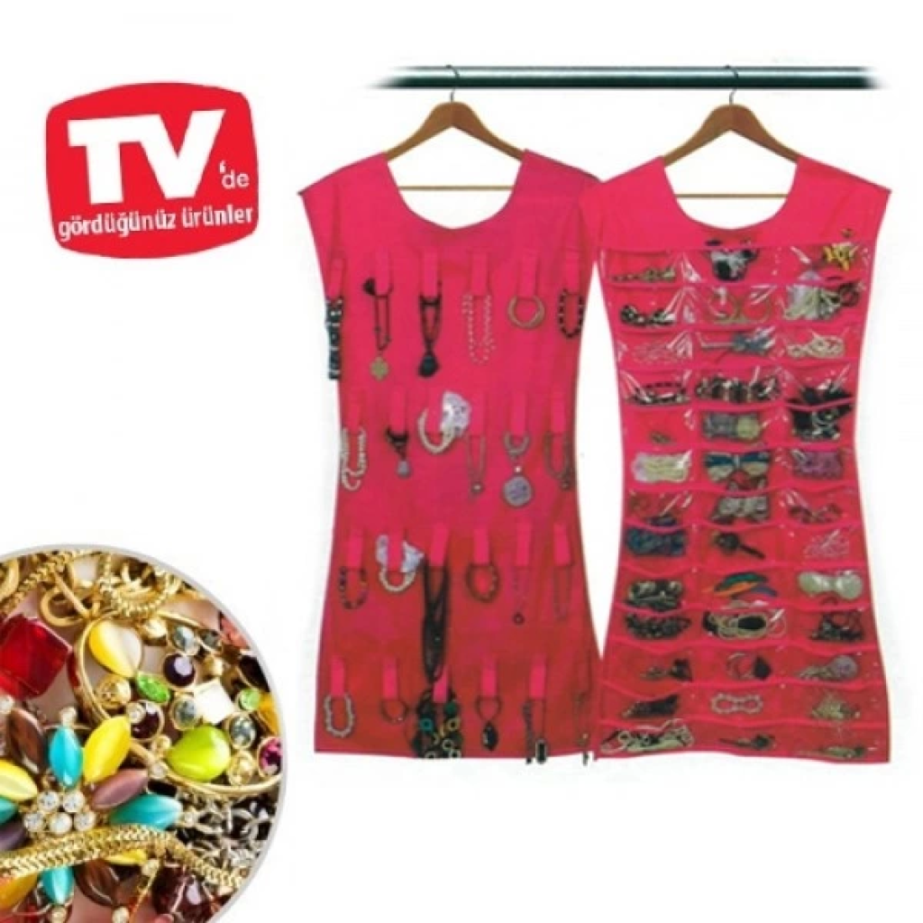 Çift Traflı Elbise Şeklinde Takı OrganizeriMücevherlerinizi, takılarınızı organize etmekte zorlanıyor musunuz?Elbise dolabınıza asabileceğiniz bu organizer işinizi kolaylaştıracaktır.Takılarınızı asmak için yaratıcı küçük elbise şeklinde mücevher organizer.Elbise dolabınızda askıda kullanabilirve her türlü takınızı aynı zamanda görebilirsiniz.Sağlam kumaştan yapılmıştır deforme olmaz!Takılarınızı kontrol altına alarak küpe, kolye, bilezik gibi bir çok takınızı saklayabileceksiniz.İki tarafı açık olduğundan dolayı kolayca takı koleksiyonunuzu görebilirsiniz.Bir tarafında 30 açık cep diğer tarafında 14 kanca ve döngü sekme bulunmaktadır.İki taraflı organizatör sizin bir numaralı yardımcınız olabilir.Her konuda olduğu gibi düzen konusunda da kadınlar erkeklere göre daha titizlerdir.İster ev yaşantılarında ister iş hayatlarında olsun, her şey belli bir düzende ve tertipte olmalıdır. İş yerinde özellikle çalışma masaları bir hayli düzenlidir.Kalemler kalemlikte, evraklar dosyalarında olmalıdır onlar için. Neredeyse tüm günlerini ofislerinde geçirseler bile eve döndüklerinde de bu düzeni devam ettirirler ve ofiste olduğu gibi evde de her şey yerli yerinde olmalıdır.Elbise dolapları kusursuz, mutfakta her eşya kendi yerinde, oturma odasında koltukların üzerinde duran kırlentler bile düzenli bir şekilde durmalıdır.Ürün Ouml;lçüleri:Uzunluk: 80 cmEn: 36 cmPaket İçeriği:1 AdetElbise Şeklinde Takı Organizeri Pembe Renkp.p1 {margin: 0.0px 0.0px 0.0px 0.0px; font: 12.0px Helvetica}p.p2 {margin: 0.0px 0.0px 0.0px 0.0px; font: 12.0px Helvetica; min-height: 14.0px}span.s1 {font: 12.0px Courier}. Ürün Markası: Lisinya