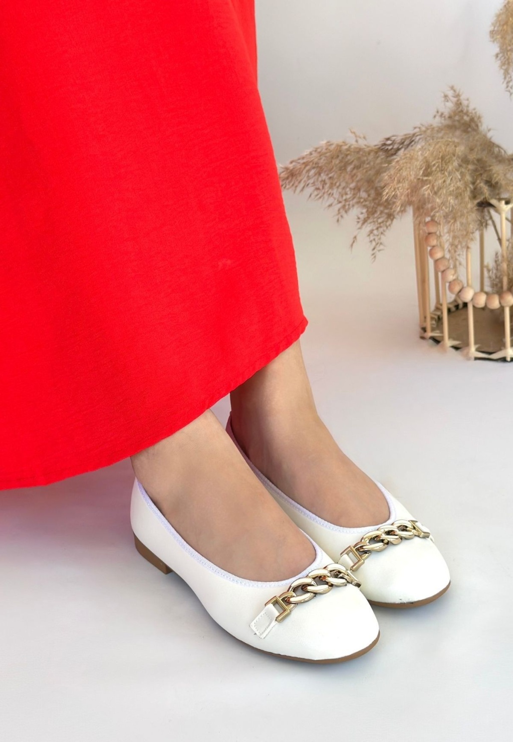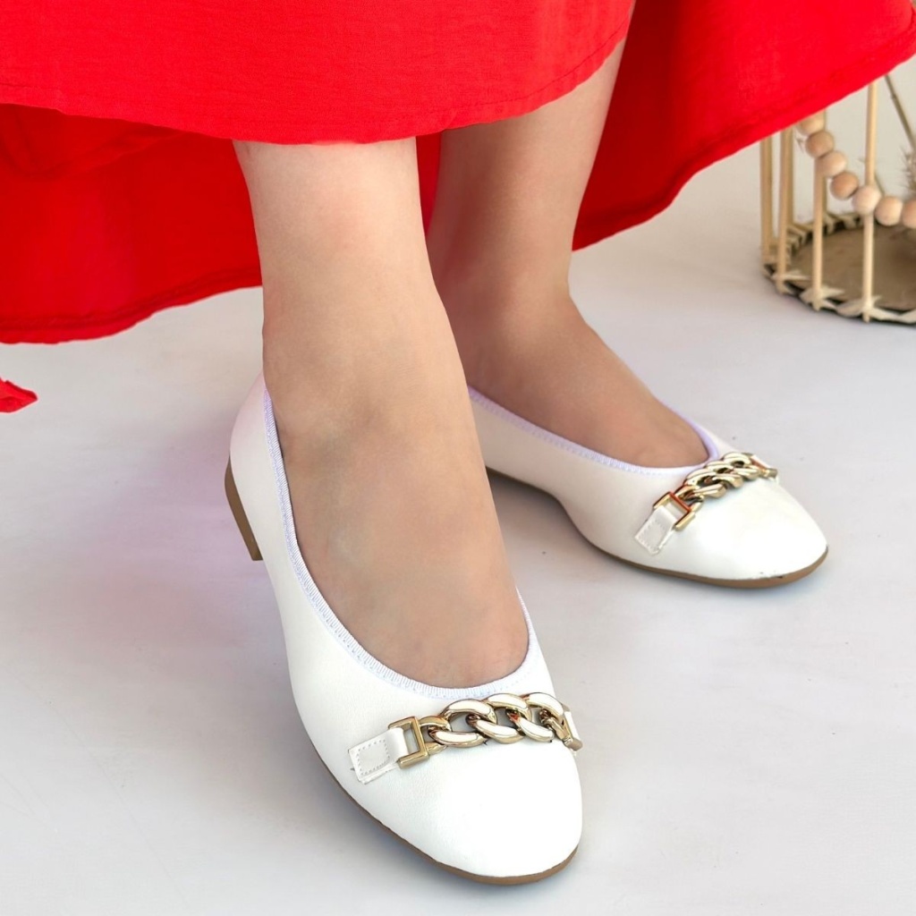 Cleo Beyaz Cilt Babet Ayakkabı -