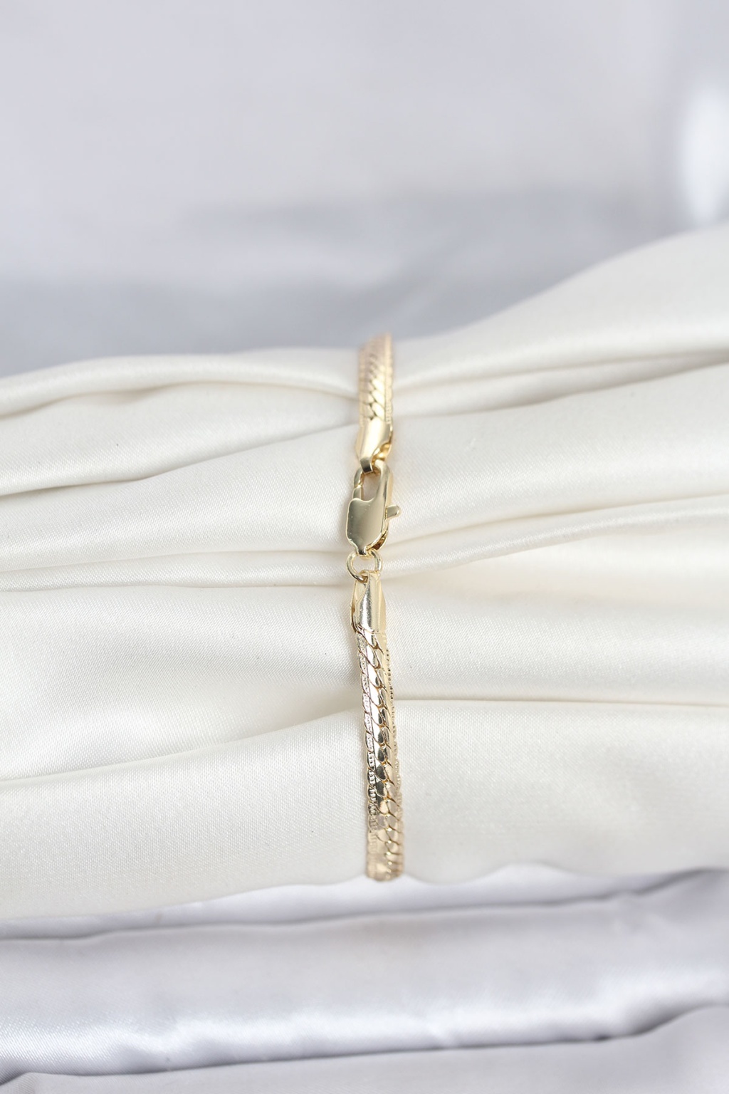 CM 14K Gold Renk Lazerli Yassı Zincir Model Kadın Bileklik - Lisinya