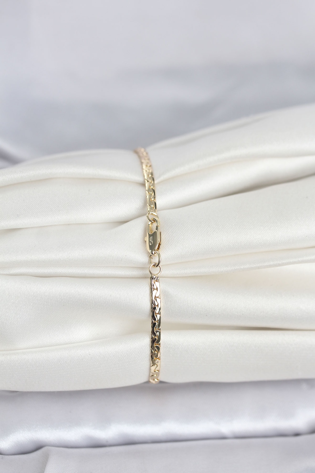 CM 14K Gold Renk Yassı Ezme Zincir Model Kadın Bileklik - Lisinya
