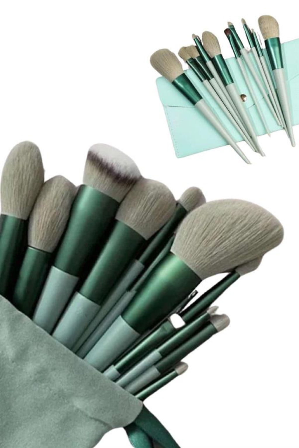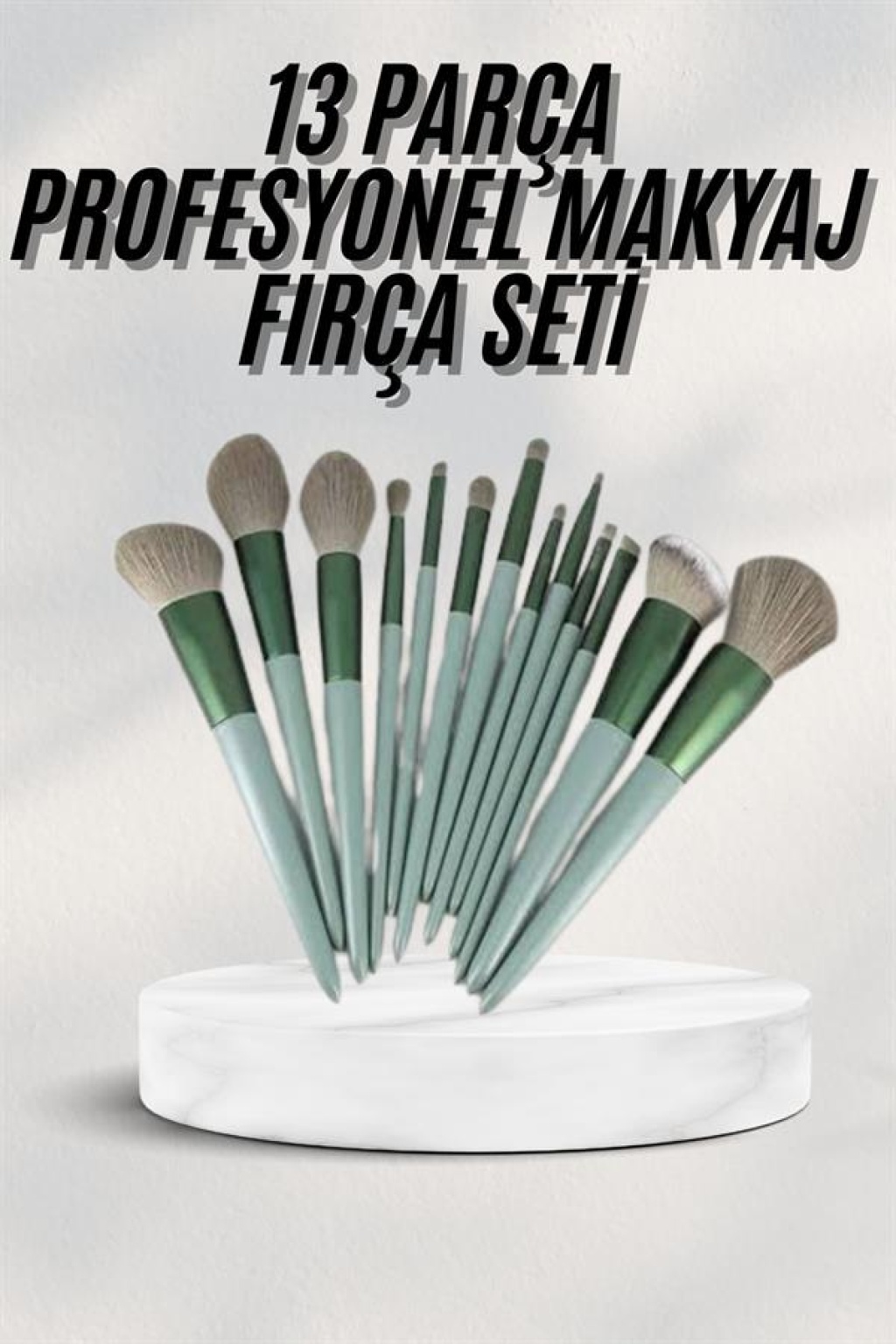 Makyaj Fırça Seti Yeşil 13 Parça Fondöten Fırçası Allık Fırçası Far Fırçası -
