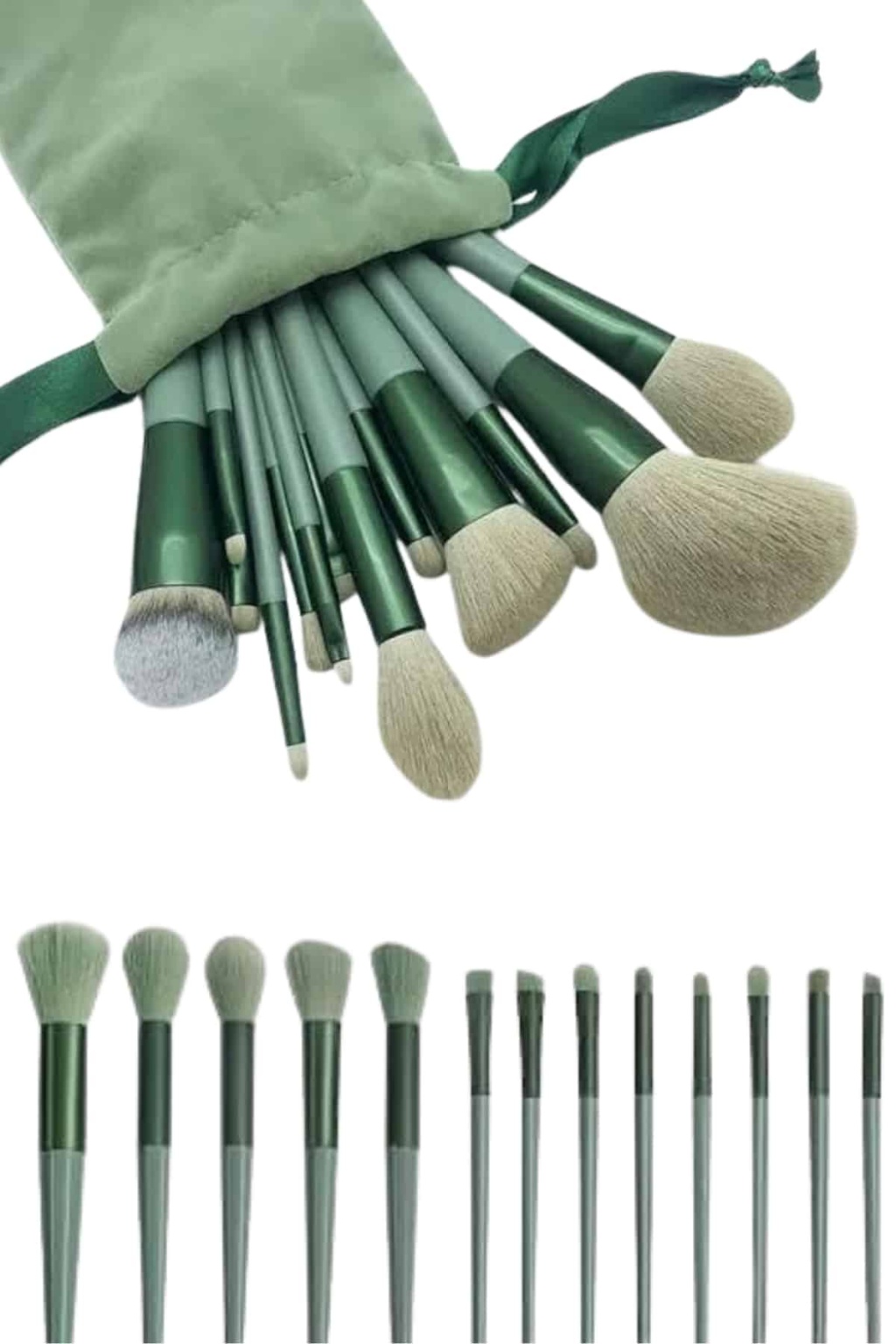 Makyaj Fırça Seti Yeşil 13 Parça Fondöten Fırçası Allık Fırçası Far Fırçası -