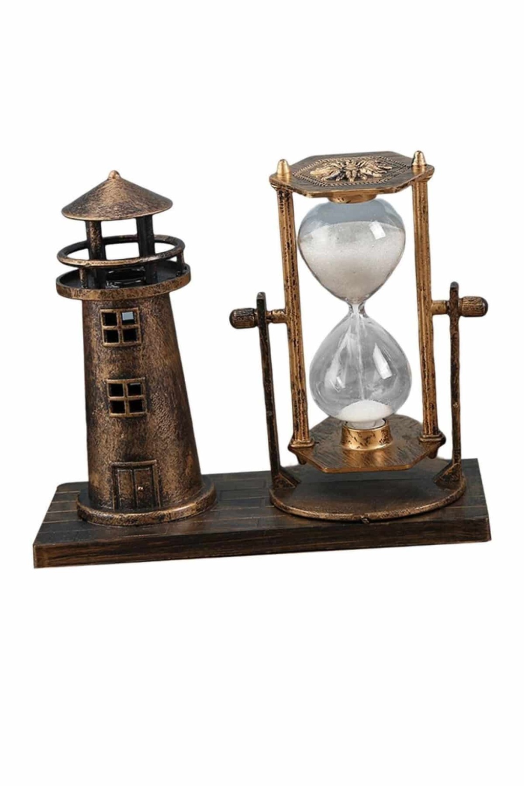Deniz Feneri Kum Saati Ahşap Görünümlü Vintage Tarz Biblo - Lisinya