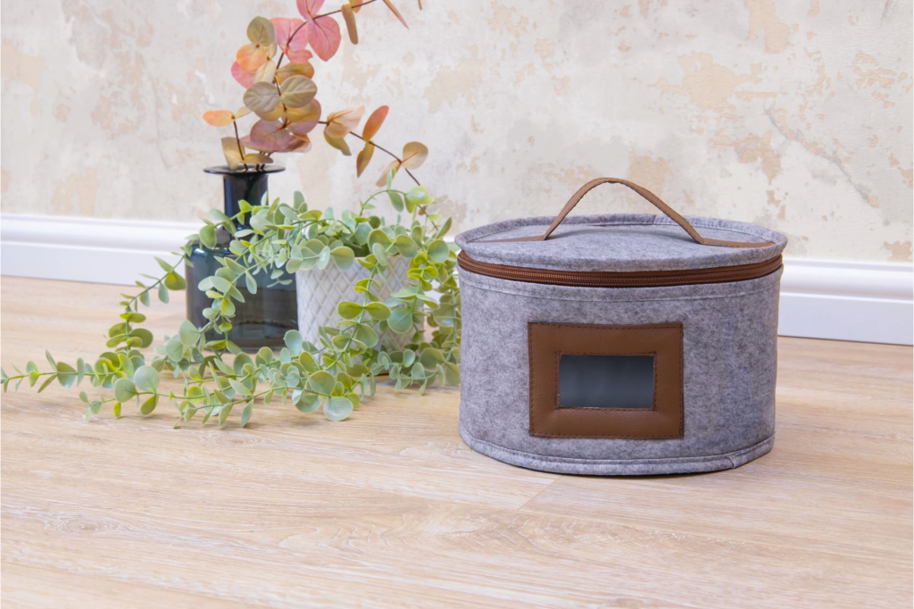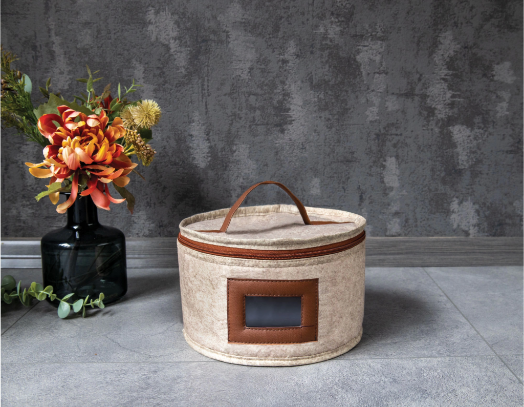 Deri Şeritli Pencereli Yuvarlak Çok Amaçlı Düzenleyici Organizer Kutu Keçe Çanta