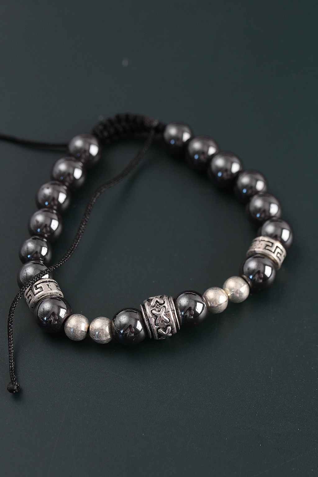 Doğal Taş X Model Antrasit Renk Asansörlü Erkek Bileklik - Lisinya