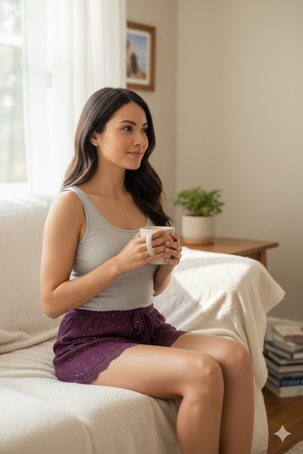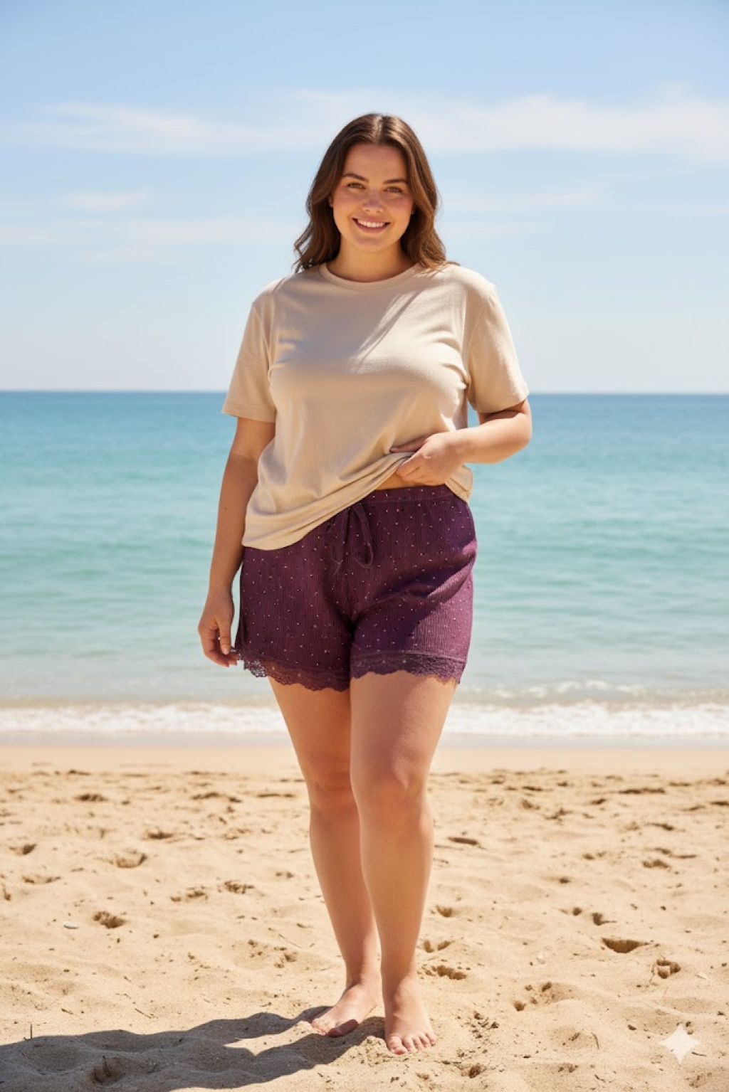 Düz Renk Mini Çiçek Desenli Penye Kadın Ev Şortu Bacak Dantel Detaylı Ev Giyim Gül Kurusu