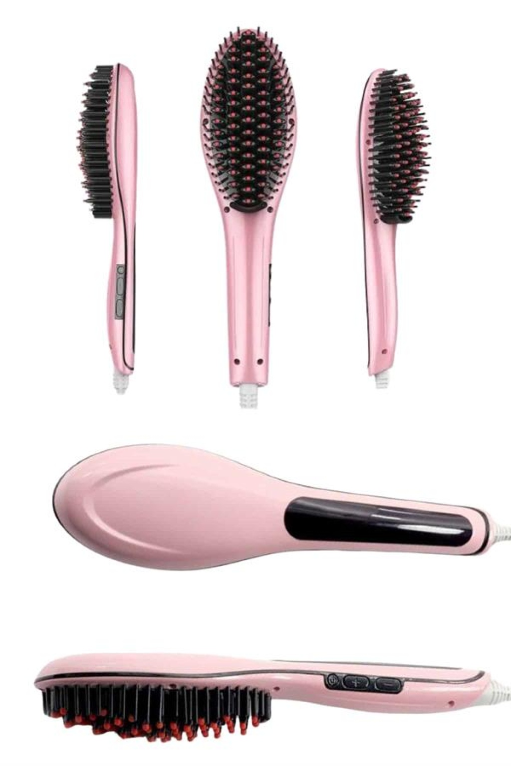 Elektrikli Saç Düzleştirici Tarak Saç Düzleştirici Fırça Sıkı Dişli Pembe -
