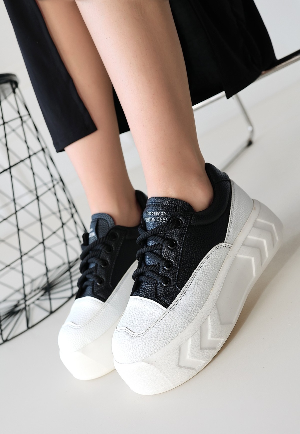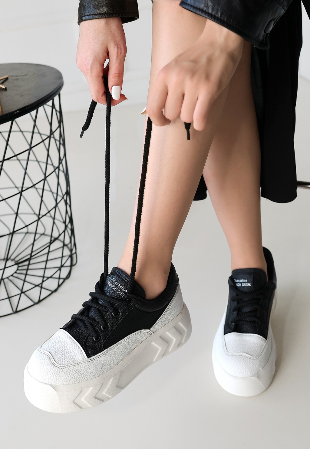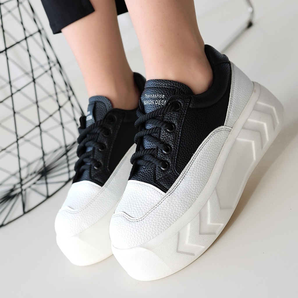 Emwa Siyah Cilt Bağcıklı Spor Ayakkabı - Lisinya