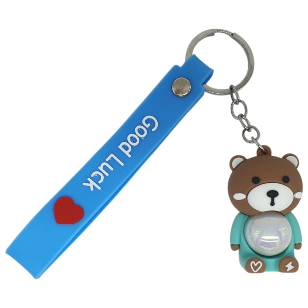 Figürlü ve Işıklı Silikon Anahtarlık - Ayıcık - Turkuaz