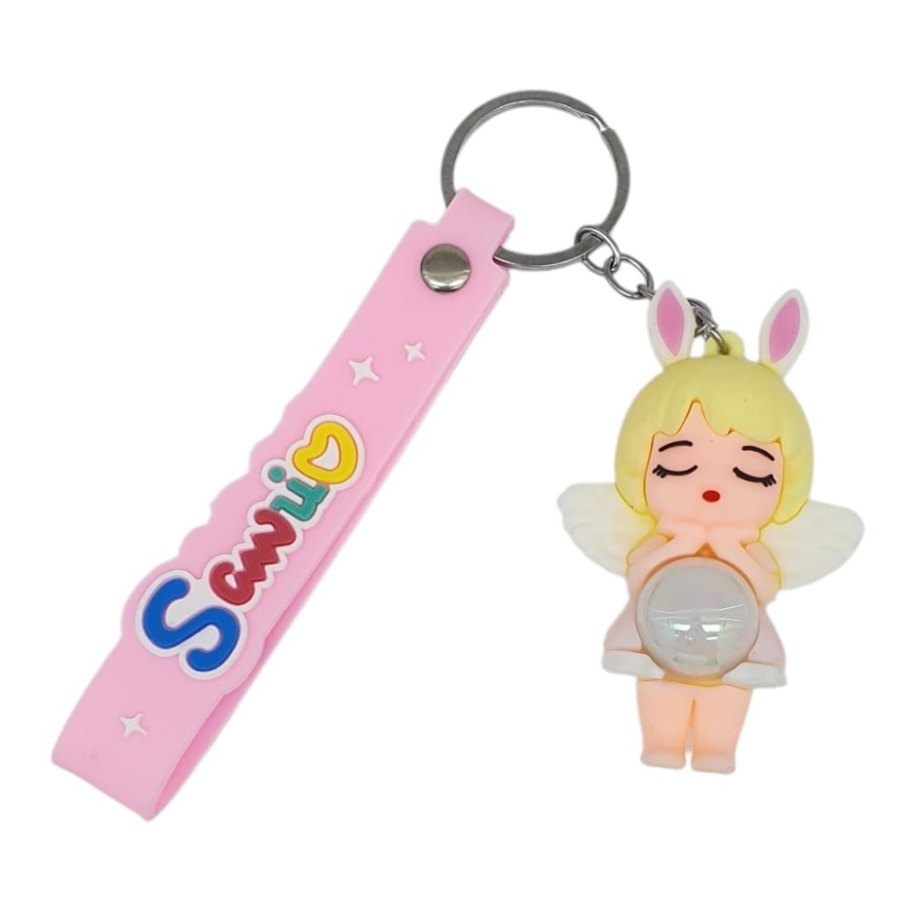 Figürlü ve Işıklı Silikon Anahtarlık - Kız Figür - Beyaz (Lisinya)