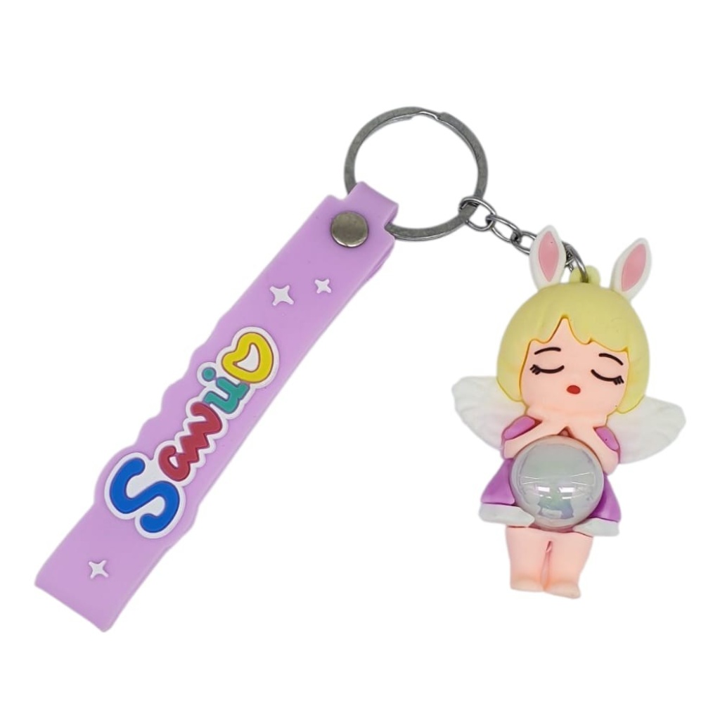 Figürlü ve Işıklı Silikon Anahtarlık - Kız Figür - Mor