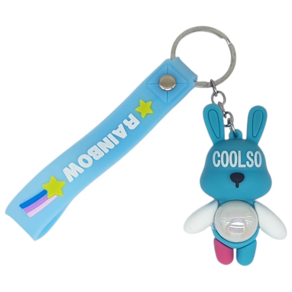Figürlü ve Işıklı Silikon Anahtarlık - Tavşan - Açık Mavi