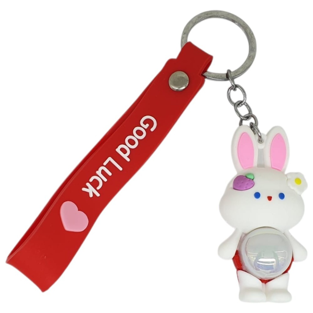 Figürlü ve Işıklı Silikon Anahtarlık - Tavşan - Kırmızı