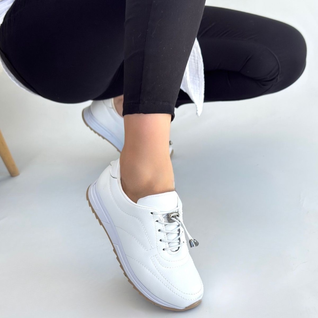 Finna Beyaz Cilt Bağcıklı Spor Ayakkabı -