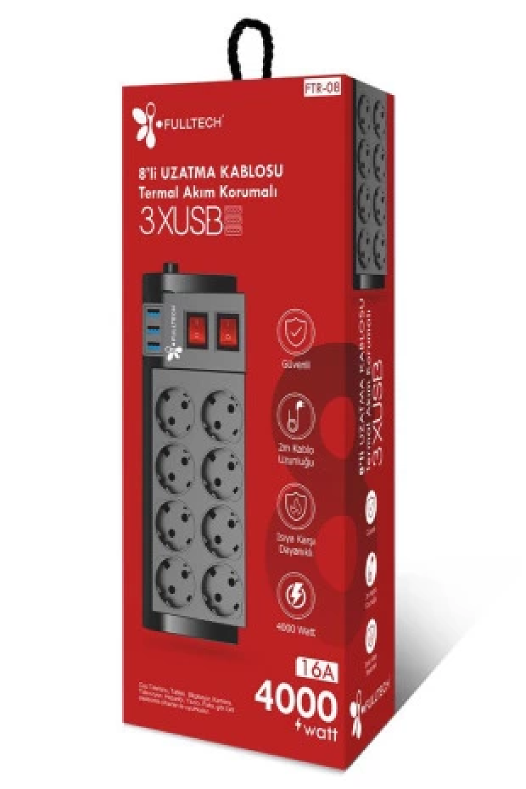 Ftr-08 8’li Termal Akım Korumalı Priz -
