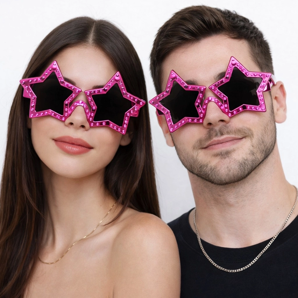 Fuşya Renk Disko Yıldızı Retro Parti Gözlüğü 16x7 Cm -