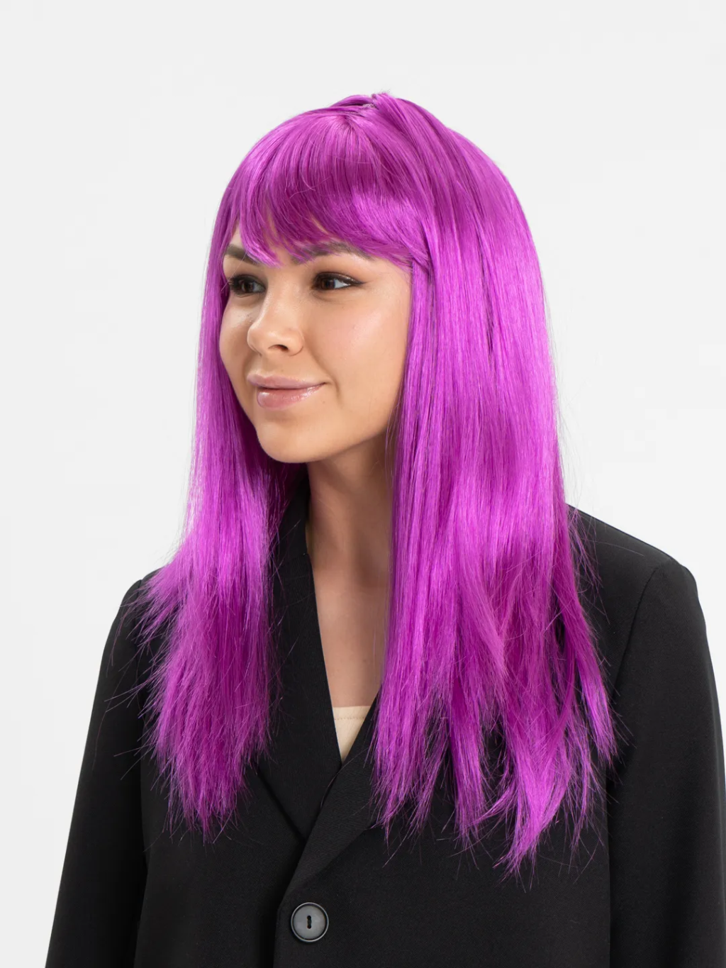 Fuşya Renk Düz Kesim Uzun Parti Peruğu Takma Saç -