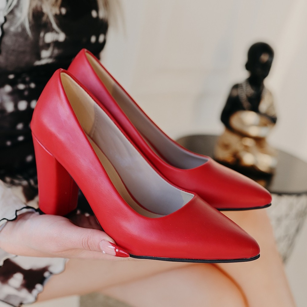 Renk: KırmızıDetay: TopukluMalzeme: CiltTopuk Boyu: 8.5 cm.Taban Materyali: Jurdan Tabanİç Materyali: Pad'li İç Astar