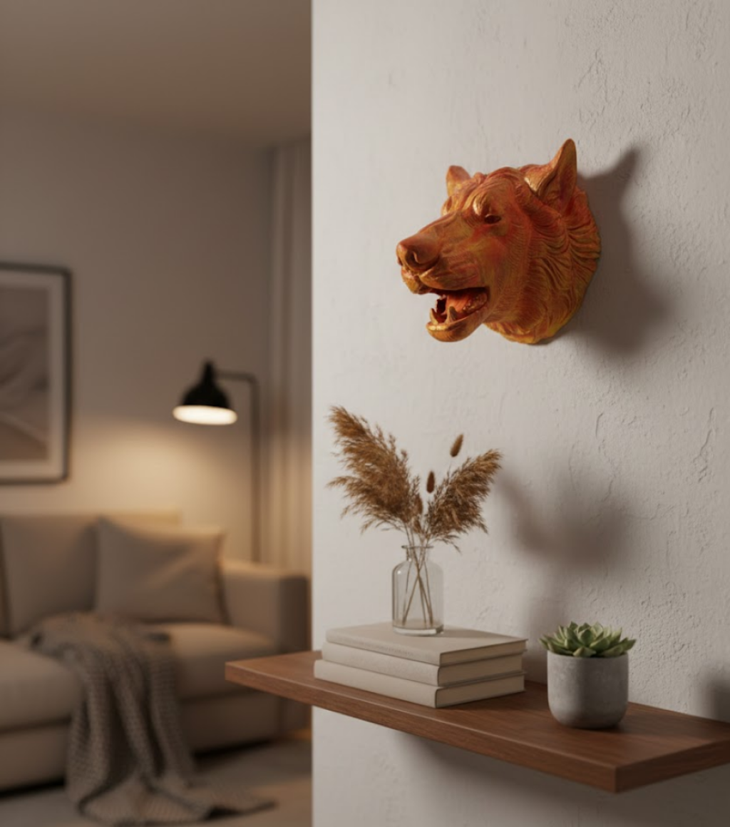 Gold Renk 3D Kurt Başı Duvar Dekoru -