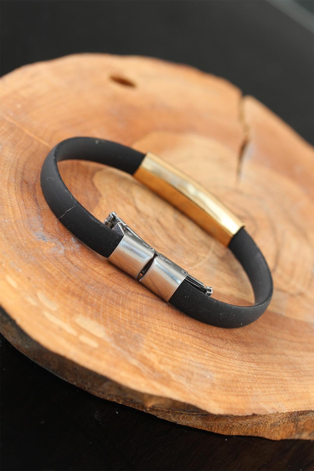 Havalı ve şık olmak için Gold Renk Çelik Yıldızlı Tasarım Siyah Renk Silikon Erkek Bileklik modeli uygun bir seçim olacak.Ürün Markası: Lisinya