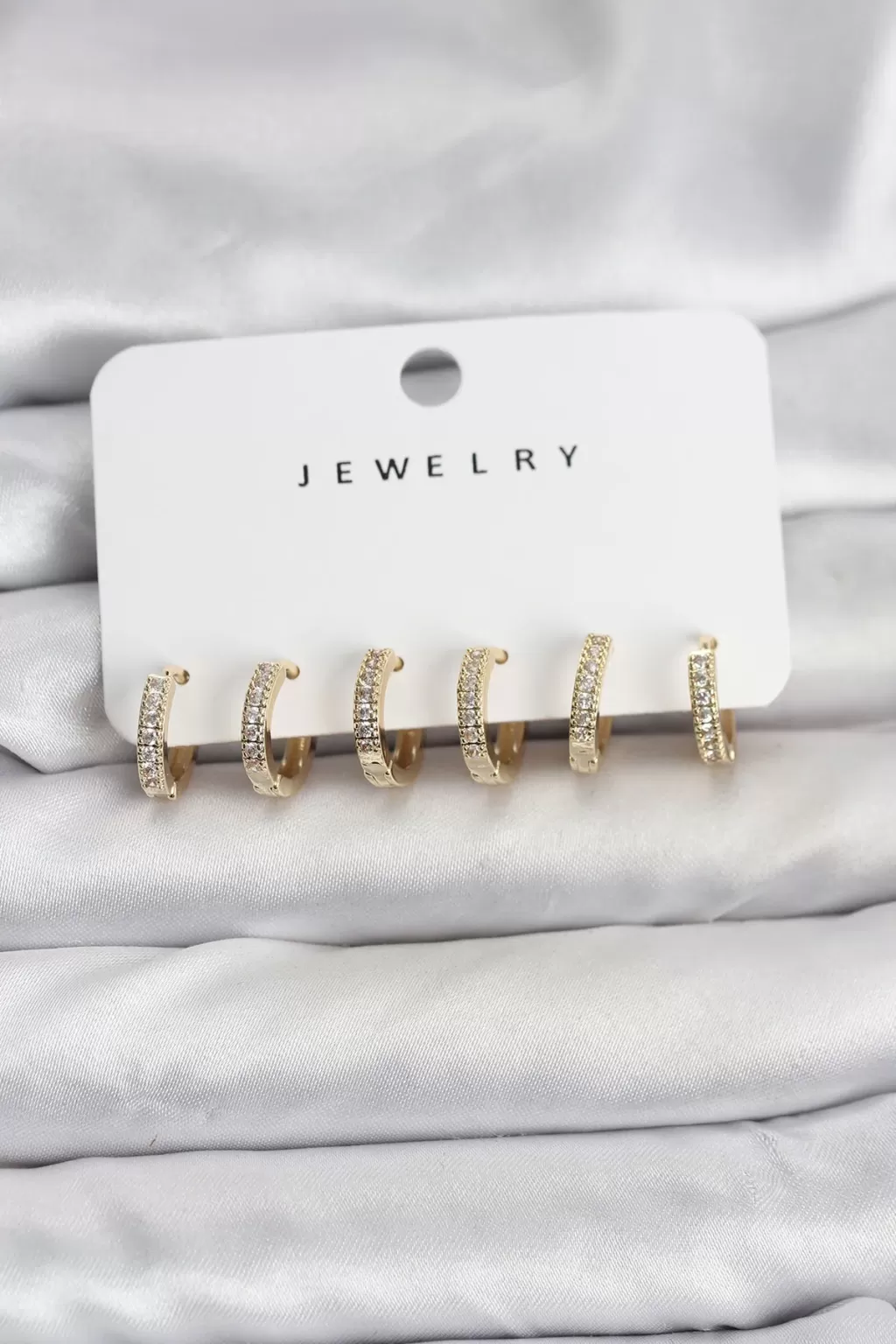 Gold Renk Pirinç Zirkon Taşlı Halka Kadın Küpe Seti