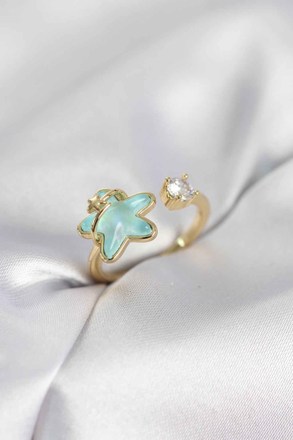 Gold Renk Turkuaz Yıldız Model Kadın Yüzük - Lisinya