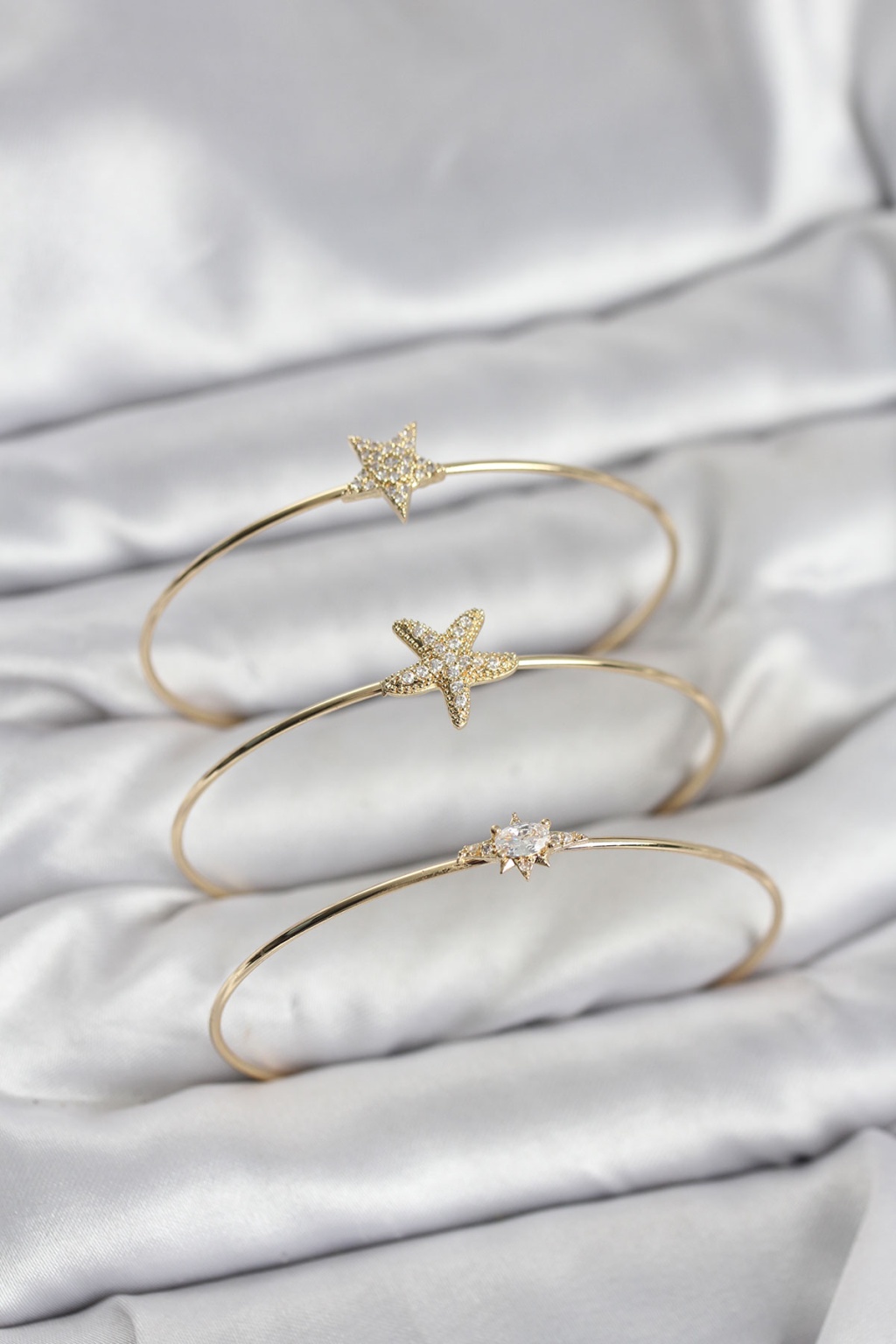 Gold Renk Zirkon Taşlı Kutup Yıldızı Model 3'lü Kadın Bileklik Kombini -