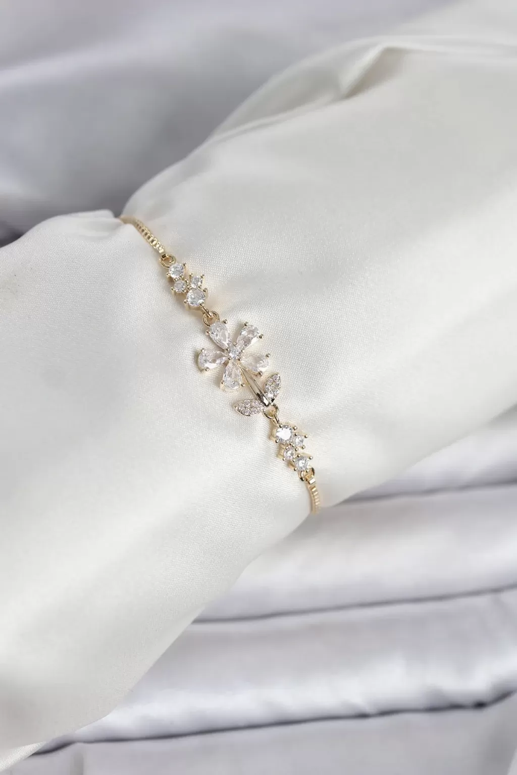 Gold Renk Zirkon Taşlı Papatya Model Asansörlü Kadın Bileklik