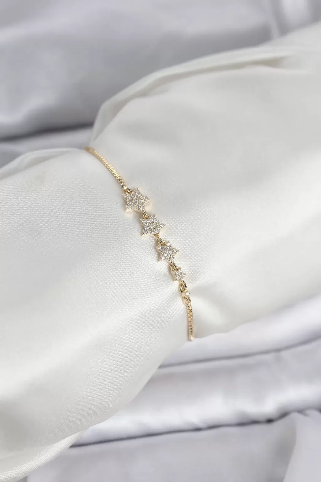 Gold Renk Zirkon Taşlı Yıldız Model Asansörlü Kadın Bileklik