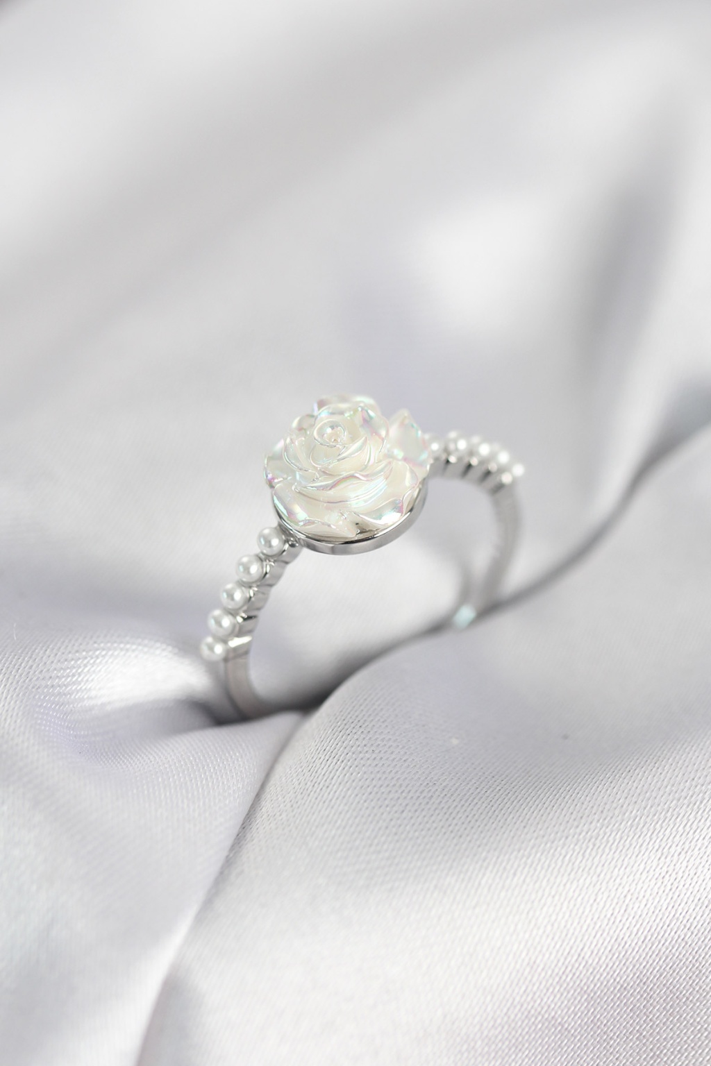 Gümüş Renk Gül Model İncili Kadın Yüzük - Lisinya