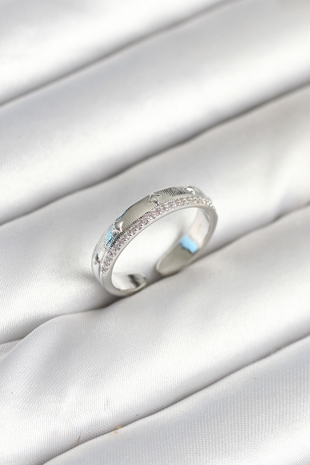 Gümüş Renk Şerit Zirkon Taşlı Kadın Yüzük -