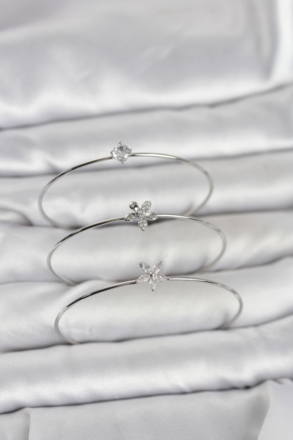 Gümüş Renk Yonca Model Zirkon Taşlı 3'lü Kadın Bileklik Kombini -